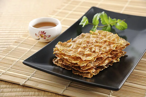 海藻脆片:採用在地八斗子天然海藻,將海藻先烘乾再打粉加入脆片中,吃起來帶點淡淡的海藻香味